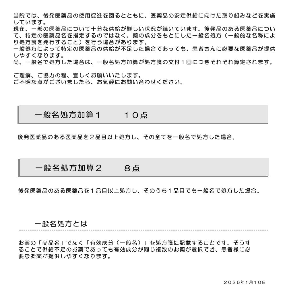 この機会に、後発医薬品の積極的な利用をお願いします。